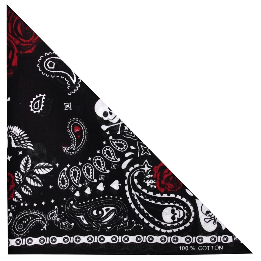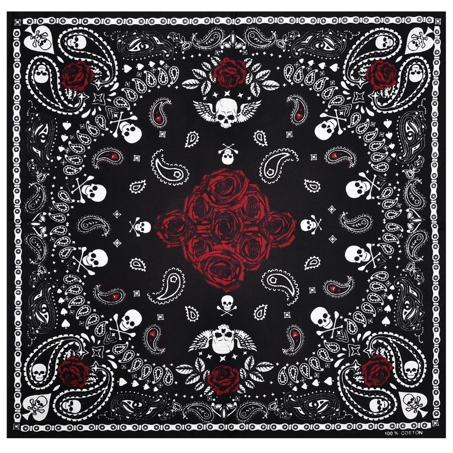 Бандана Огурцы с черепами и красными розами на черном фоне