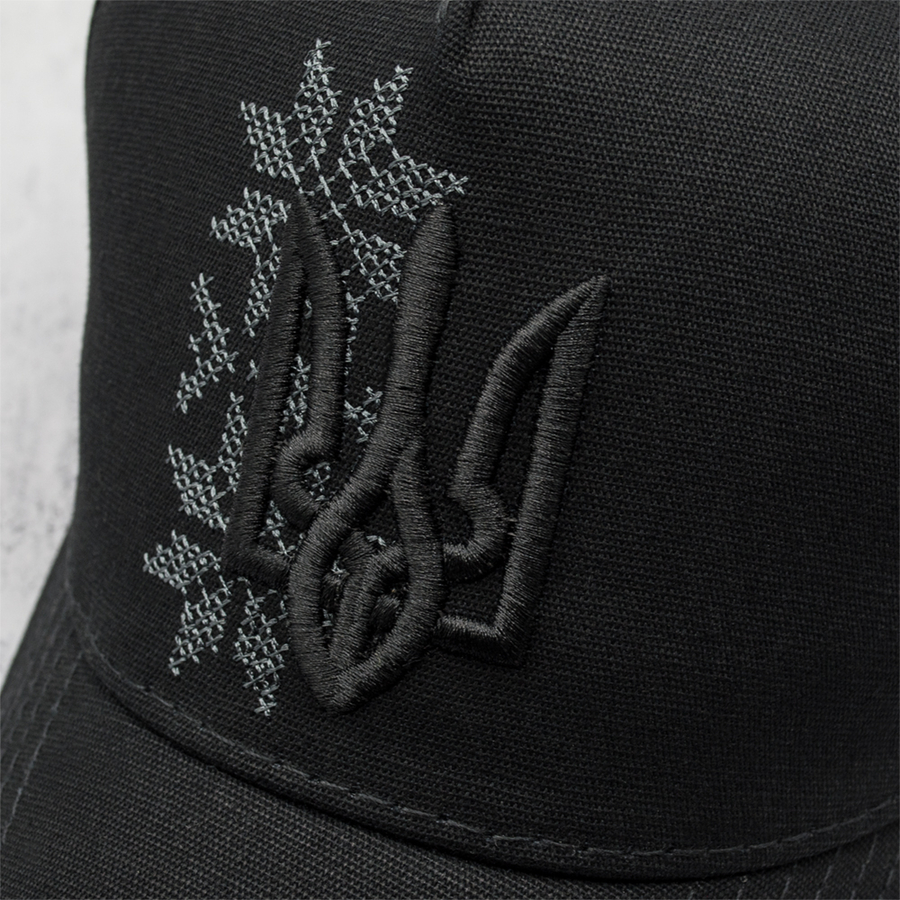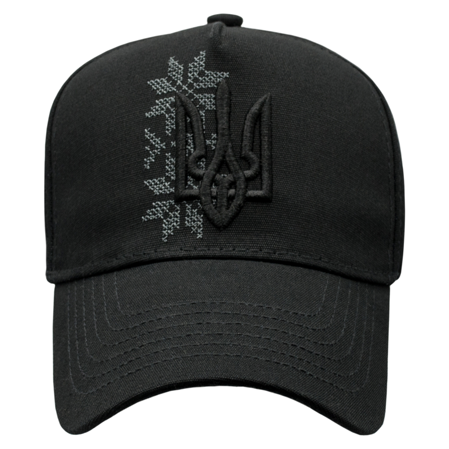 Бейсболка черная 3D Тризуб з сірим орнаментом Зірка Матері (uac-032)