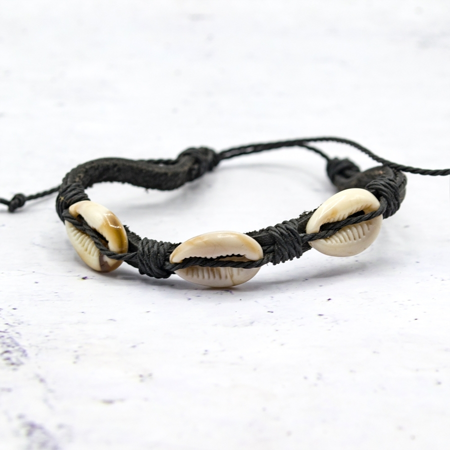Браслет Три ракушки BEL-226  Материалы: PU кожа, металлическая фурнитура.