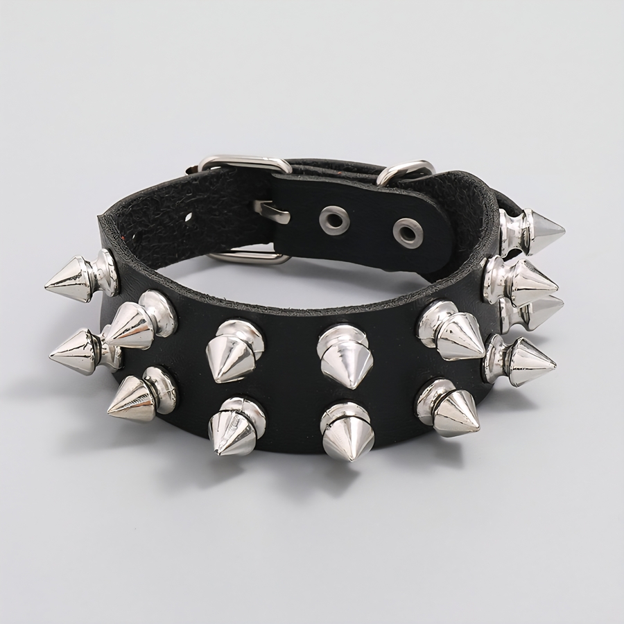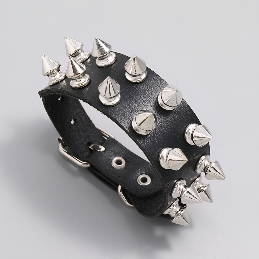 Браслет два ряда фигурных шипов (bpu-036) Браслет выполнен из полиуретановой кожи (экокожи) с металлической фурнитурой, с застежкой ременного типа. Полиуретановая кожа (экокожа) экологична и схожа с натуральной кожей. Материал имеет ценные преимущества: - повторяет фактуру и гибкость натурального аналога: - не мешает телу дышать благодаря микропористой структуре; - не растрескивается при использовании; - сохраняет мягкость на морозе; нет резкого запаха. Подходит на объем от 16 до 20 см, ширина 2.6 см.