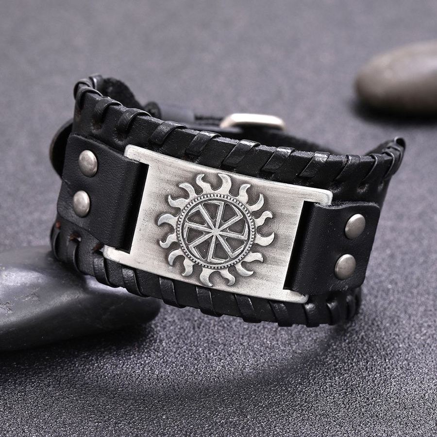 Браслет с металлической вставкой Коловорот в солнечном круге (bpm-014)