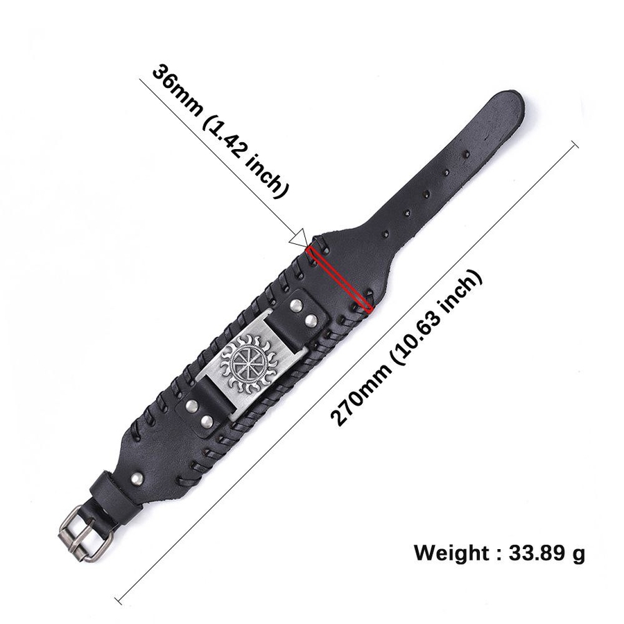 Общая длина 27,5 см, ширина 3,7 см. Браслет выполнен из полиуретановой кожи (экокожи) с металлической вставкой, на застежке ременного типа. Полиуретановая кожа (экокожа) экологичная и схожа с натуральной кожей. Материал обладает ценными достоинствами: - повторяет фактуру и гибкость натурального аналога; - не мешает телу «дышать» благодаря микропористой структуре; - не растрескивается при использовании; - сохраняет мягкость на морозе; - не имеет резкого запаха.