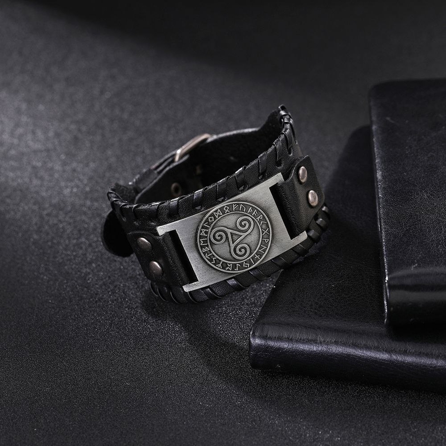 Браслет с металлической вставкой Триксель в руническом круге (bpm-015)