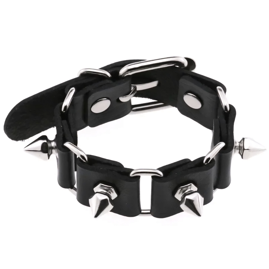 Браслет секционный с фигурными шипами (bpu-034) Браслет выполнен из полиуретановой кожи (экокожи) с металлической фурнитурой, с застежкой ременного типа. Полиуретановая кожа (экокожа) экологична и схожа с натуральной кожей. Материал имеет ценные преимущества: - повторяет фактуру и гибкость натурального аналога: - не мешает телу дышать благодаря микропористой структуре; - не растрескивается при использовании; - сохраняет мягкость на морозе; нет резкого запаха.