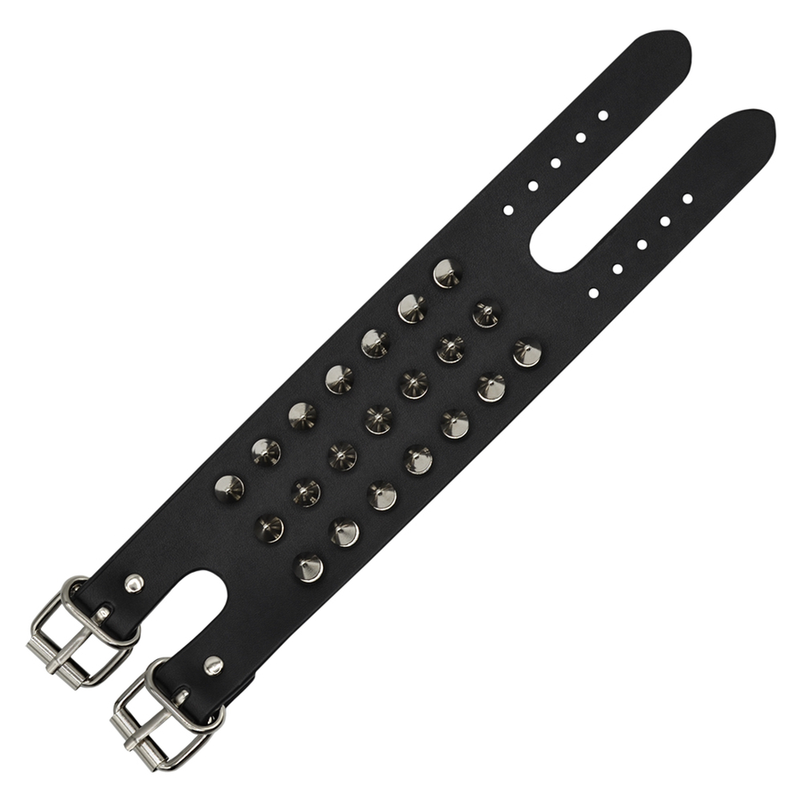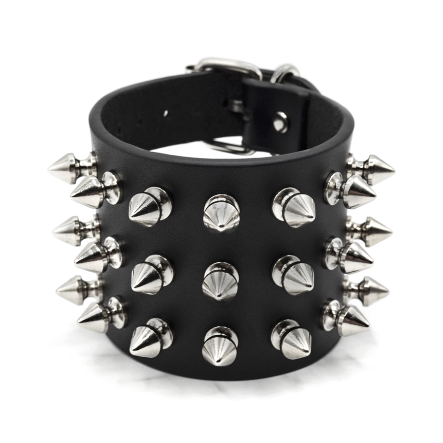 Браслет кожаный три ряда фигурных шипов (bfl-023) Высококачественная толстая кожа, высококачественная металлическая фурнитура. Длина от застежки до отверстий 18-22 см. Производство EU
