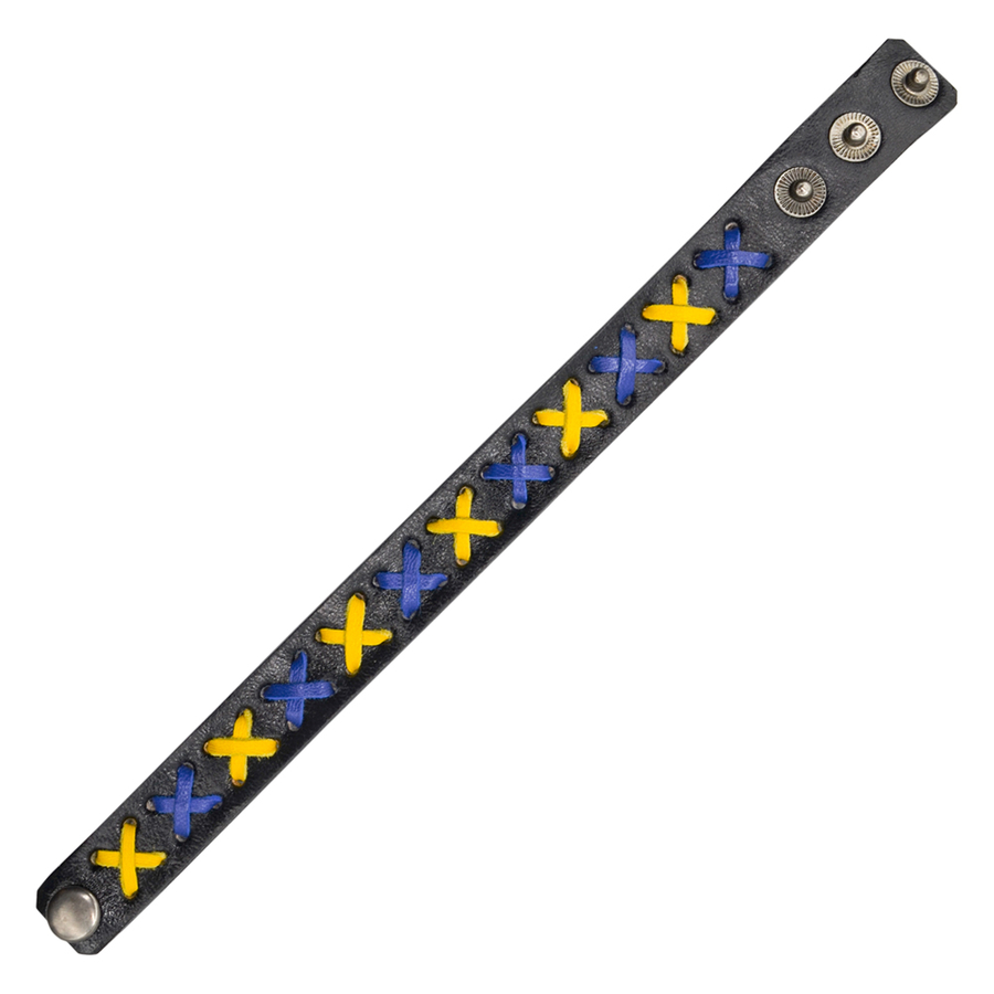 Браслет кожаный с желто-голубыми крестиками (ptsbua-010)