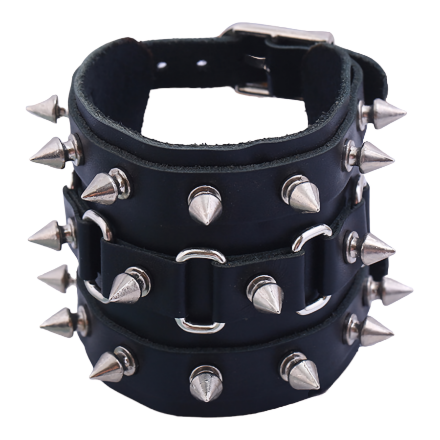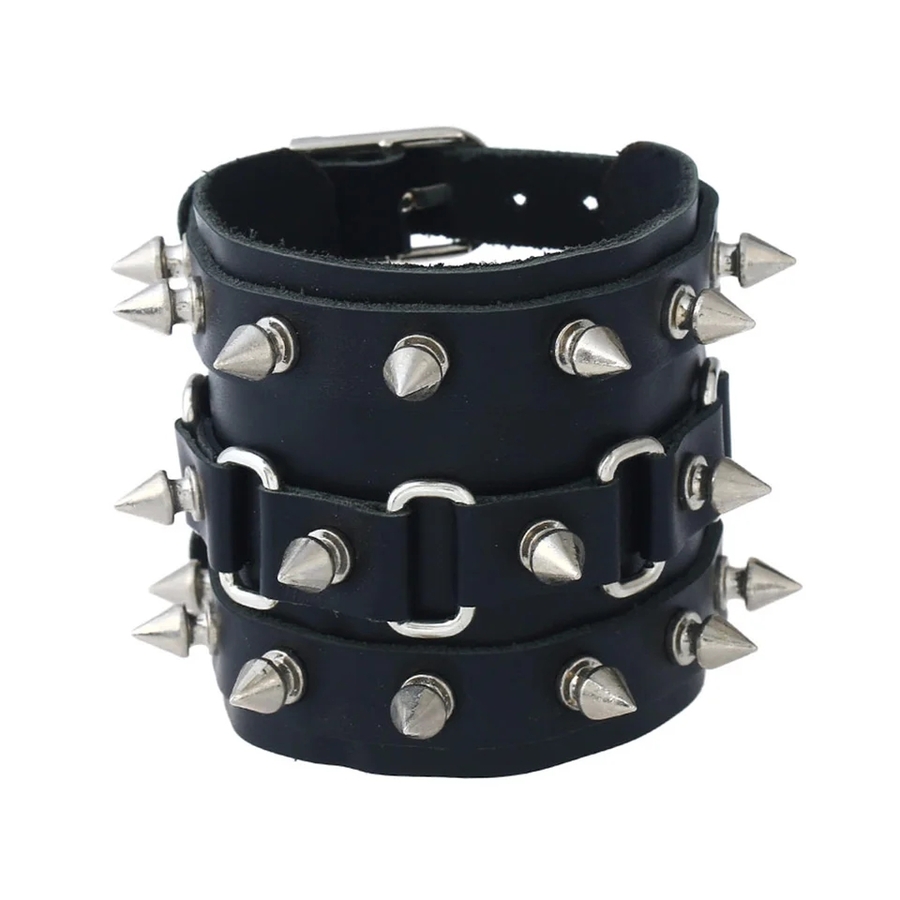 Браслет три ряда фигурных шипов с секционной вставкой (bl-169)