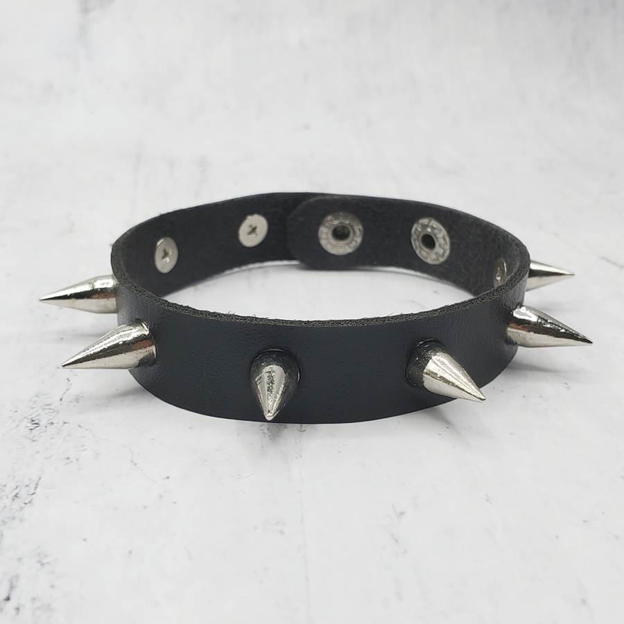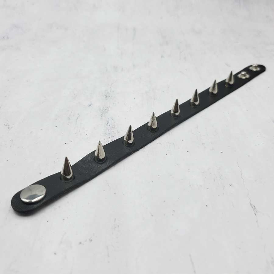 Браслет с одним рядом маленьких шипов (bpu-003)Браслет выполнен из полиуретановой кожи (экокожи) с металлической фурнитурой, с кнопочными застежками.Полиуретановая кожа (экокожа) экологична и схожа с натуральной кожей.Материал имеет ценные преимущества:- повторяет фактуру и гибкость натурального аналога:- не мешает телу «дышать» благодаря микропористой структуре;- не растрескивается при использовании;- сохраняет мягкость на морозе; нет резкого запаха.