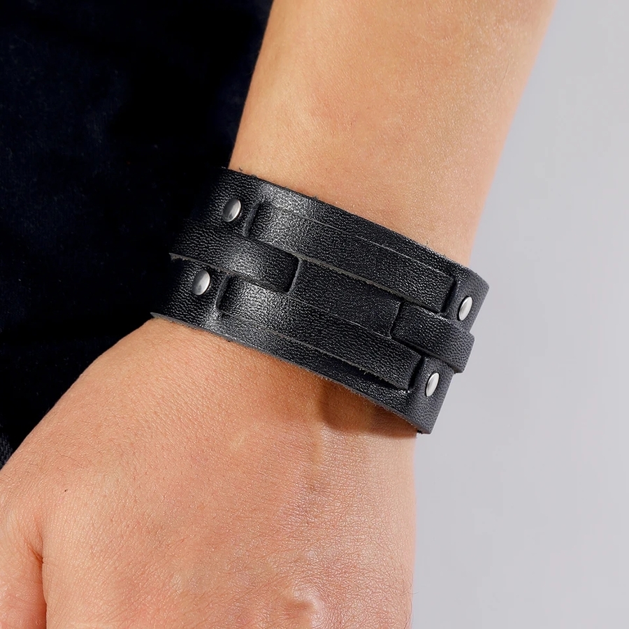 Браслет с плетеными ремешками (bl-173) Браслет выполнен из натуральной кожи с использованием металлической фурнитуры, имеет застежки ременного типа. Размеры браслета указаны на шестом фото
