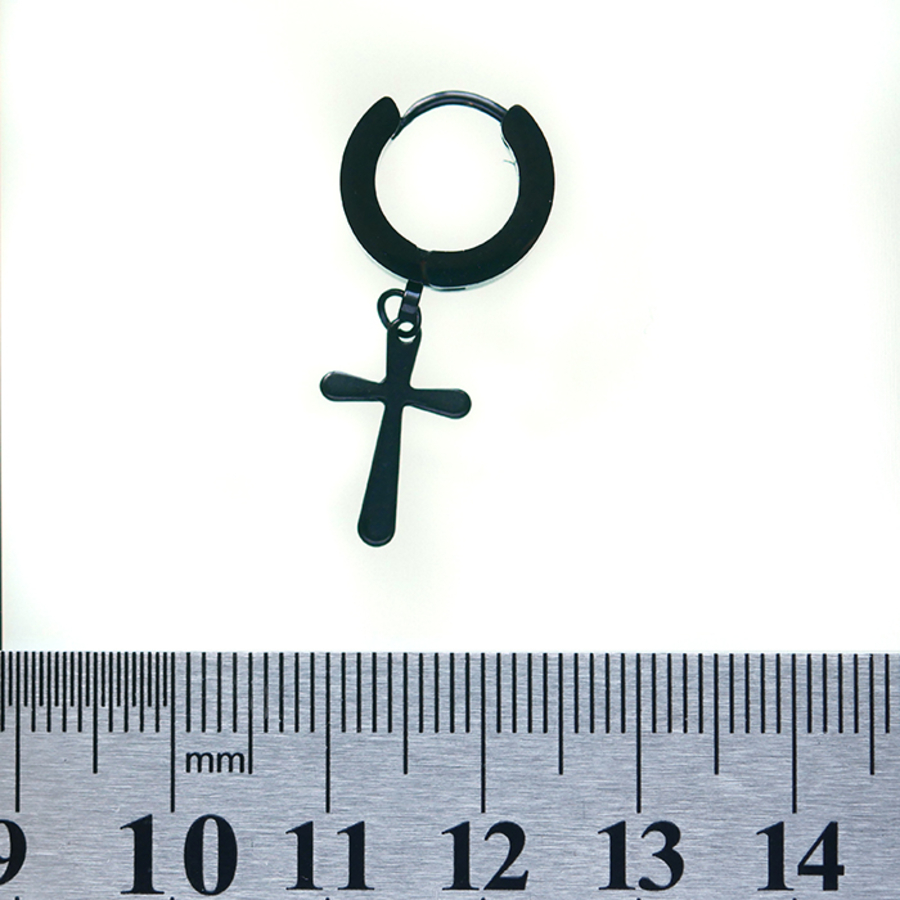Серьга с крестом (титан, черный, 13мм) (ea-040)