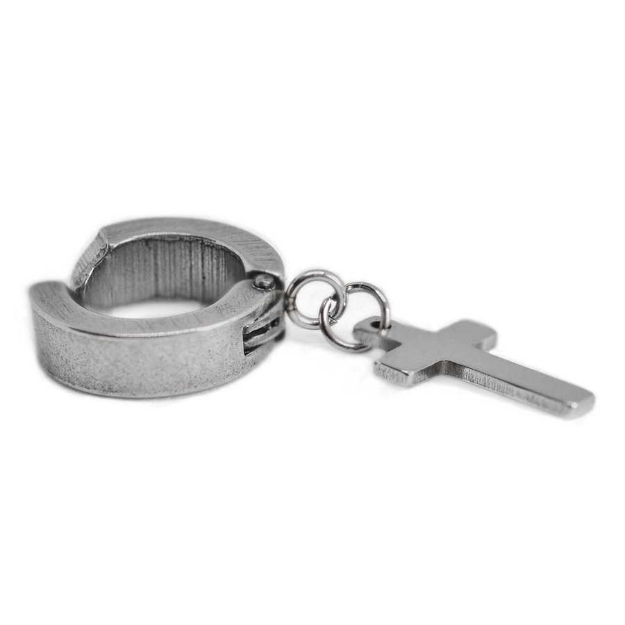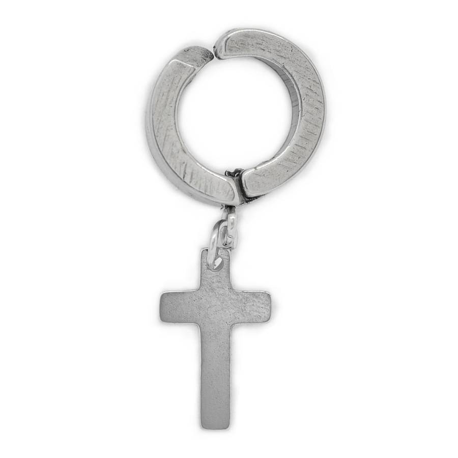 Серьга-обманка с подвеской Крест (клипса, хир.сталь, стальной, диаметр 13мм) (ea-047)