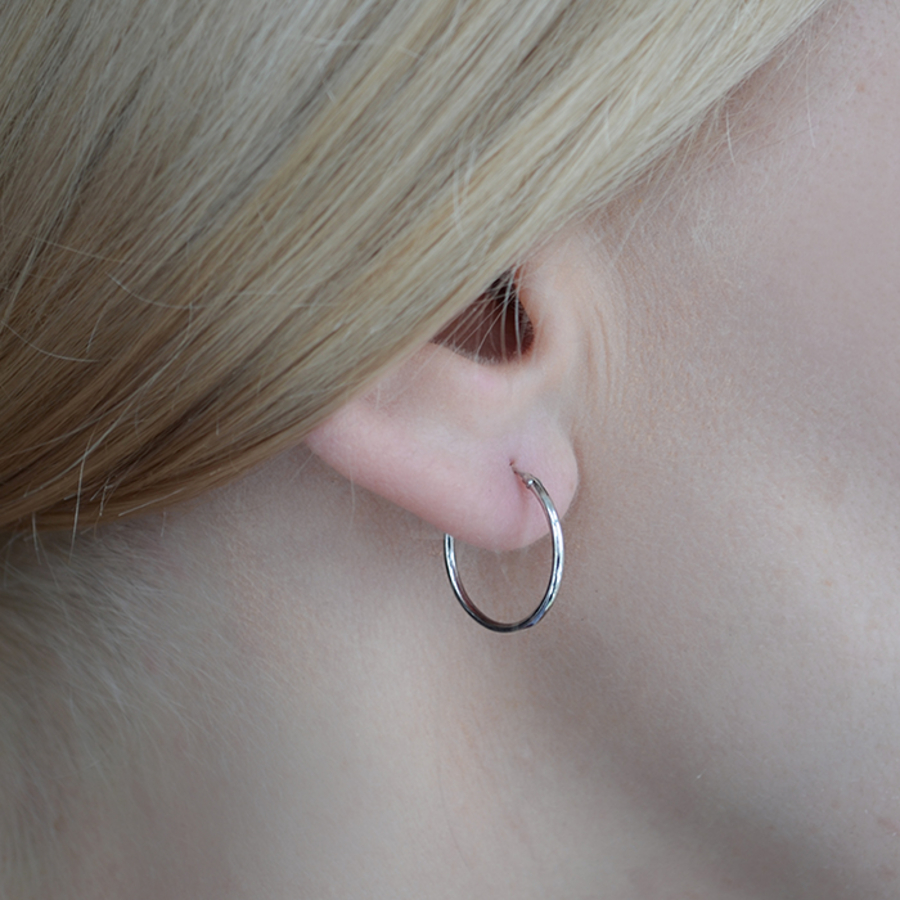 Серьга, кольцо с родиевым покрытием (диаметр 14мм, серебро 925 проба) (eas-007)
