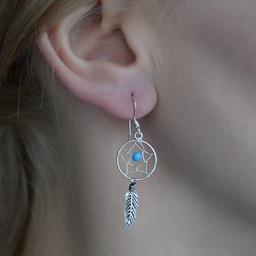 Серьга, ловец снов бирюза (серебро 925 проба) (eas-044)