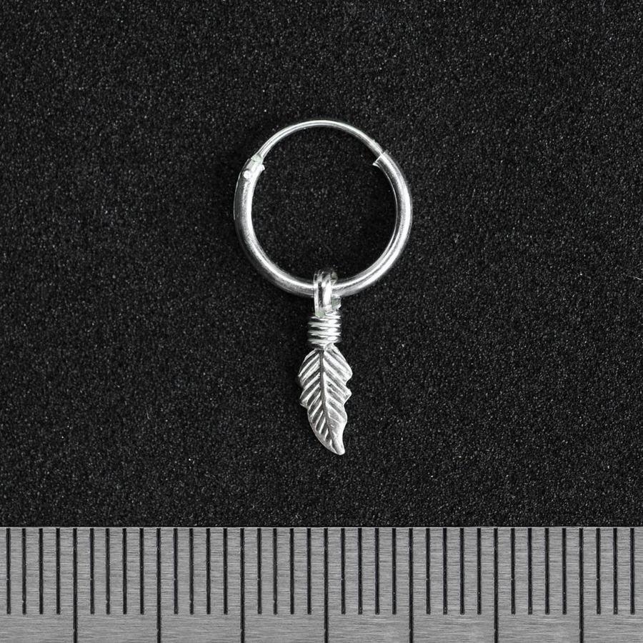 Серьга, кольцо с маленьким пером (диаметр 10мм, перо 11мм, серебро 925 проба) (eas-073)