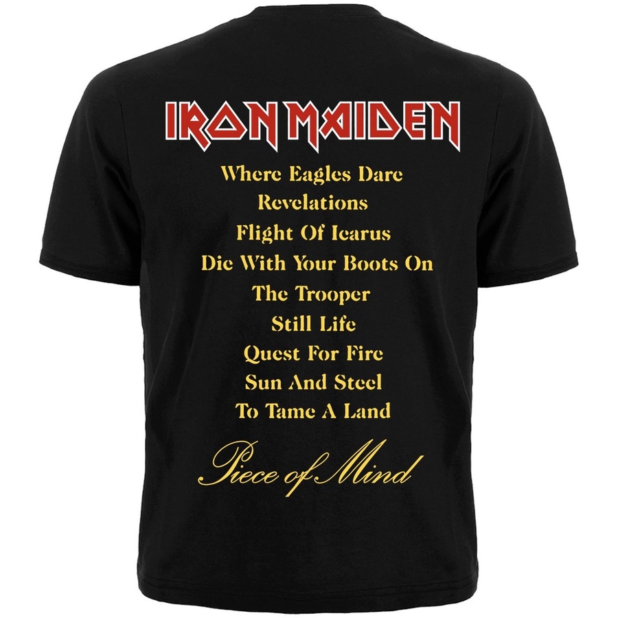 Футболка Iron Maiden "Piece of Mind" производство: Gildan; ткань: 100% хлопок (качественные швы, горловина не растягивается). Плотность 160 г/м² рисунок нанесен методом шелкотрафаретной печати (не трескается, не выстирывается, не выгорает); рисунок: краска пластизолевая производства EU. Стирать при температуре не выше 30°