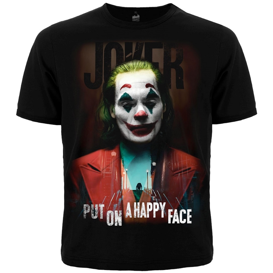 Футболка имеет оригинальный принт с Джокером в исполении Хоакина Феникса, который нанесен методом шелкотрафаретной печати.