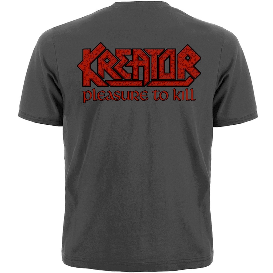 Футболка Kreator "Pleasure to Kill" (graphite)производство: Gildan;ткань: 100% хлопок (качественные швы, горловина не растягивается). Плотность 160 г/м²рисунок нанесен методом шелкотрафаретной печати (не трескается, не выстирывается, не выгорает);рисунок: краска пластизолевая производства EU.Стирать при температуре не выше 30°