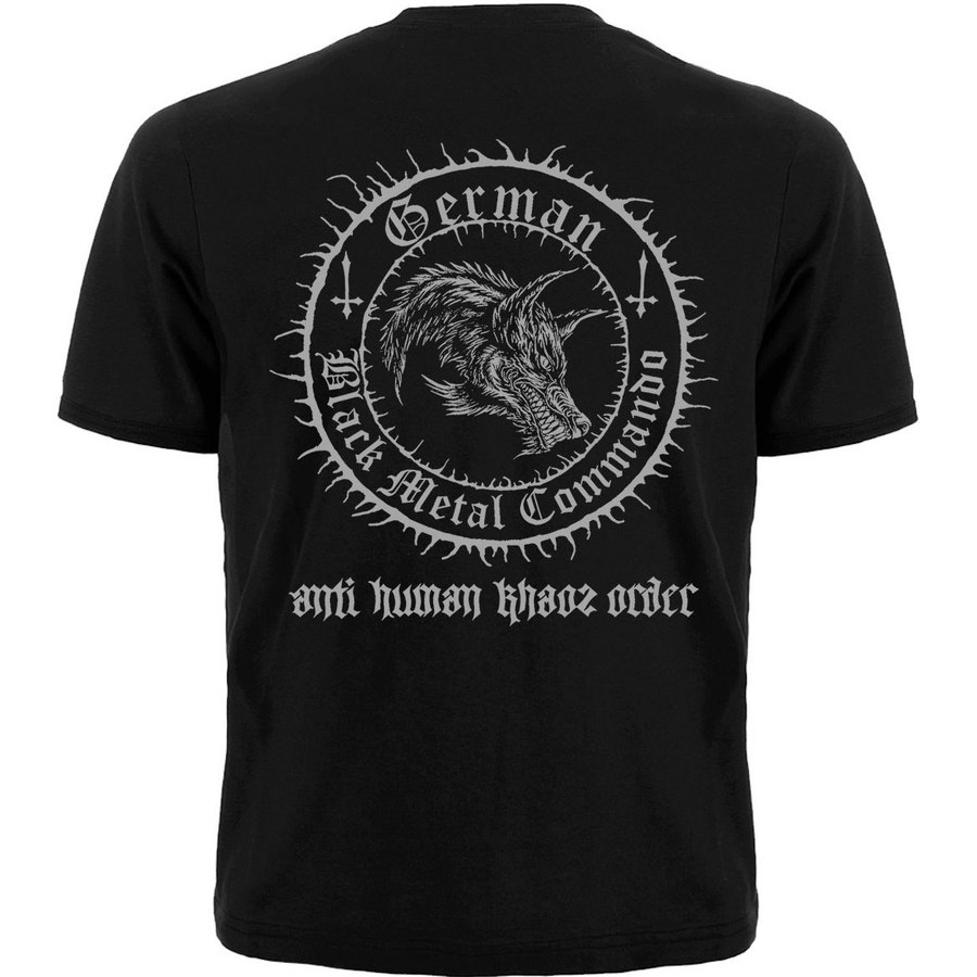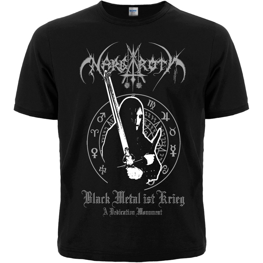 Футболка Nargaroth "Black Metal ist Krieg" производство: Gildan; ткань: 100% хлопок (качественные швы, горловина не растягивается). Плотность 160 г/м² рисунок нанесен методом шелкотрафаретной печати (не трескается, не выстирывается, не выгорает); рисунок: краска пластизолевая производства EU. Стирать при температуре не выше 30°