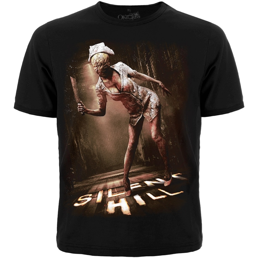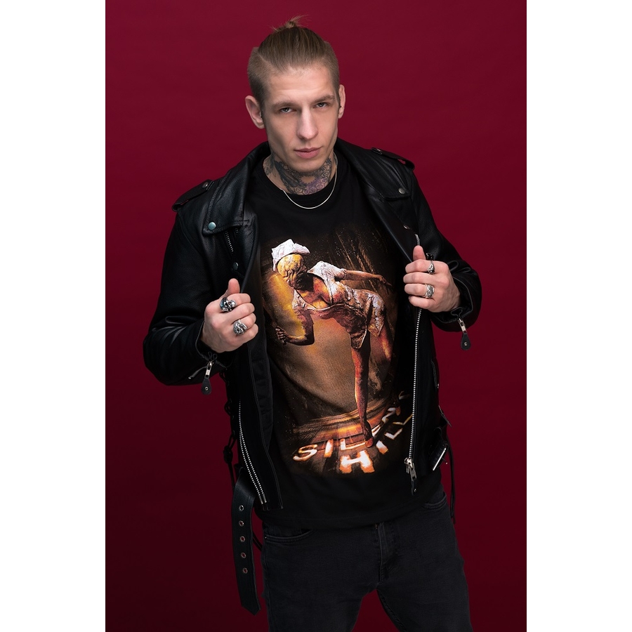 Футболка стандартного кроя с круглым вырезом горловины. Имеет оригинальный яркий принт Silent Hill: Revelation, который нанесен методом шелкотрафаретной печати.