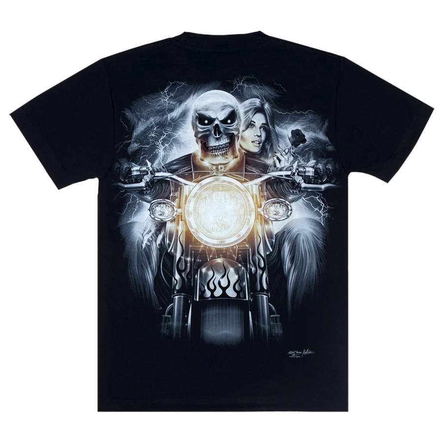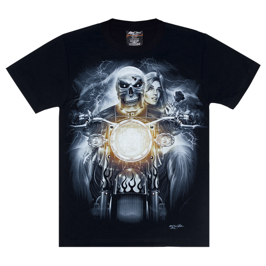 Футболка Скелет и девушка с розой на мотоцикле (3D, светится в темноте) (Rock Chang, 3D, Special Effects, The Absolute collections)