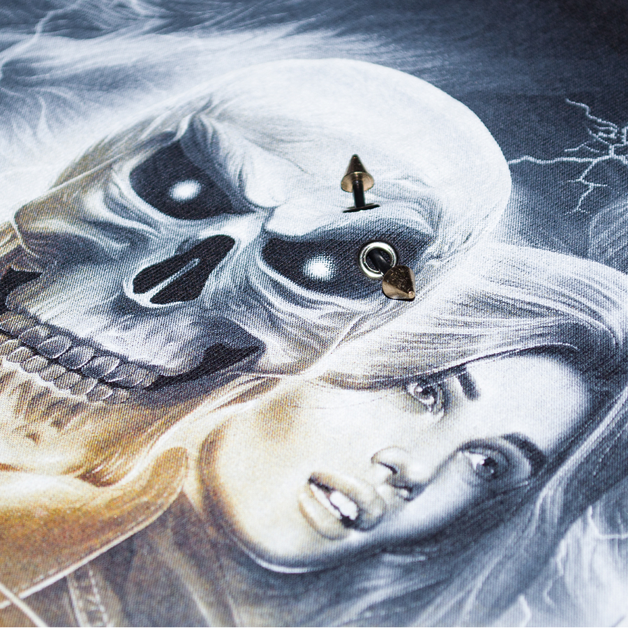 рисунок: светится в темноте, эффект 3D, с элементами металлической фурнитуры и пирсинга.
