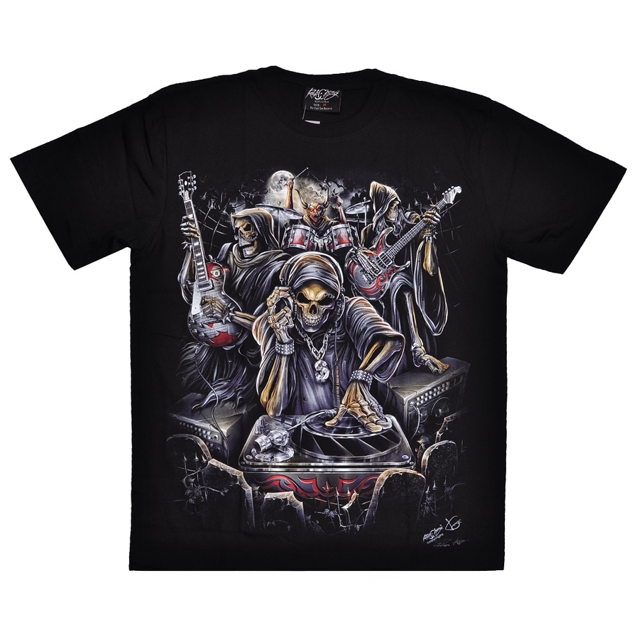 Футболка Skeleton DJ and Rock Band (светится в темноте) (Rock Chang, Man T-shirt, glow in the dark)