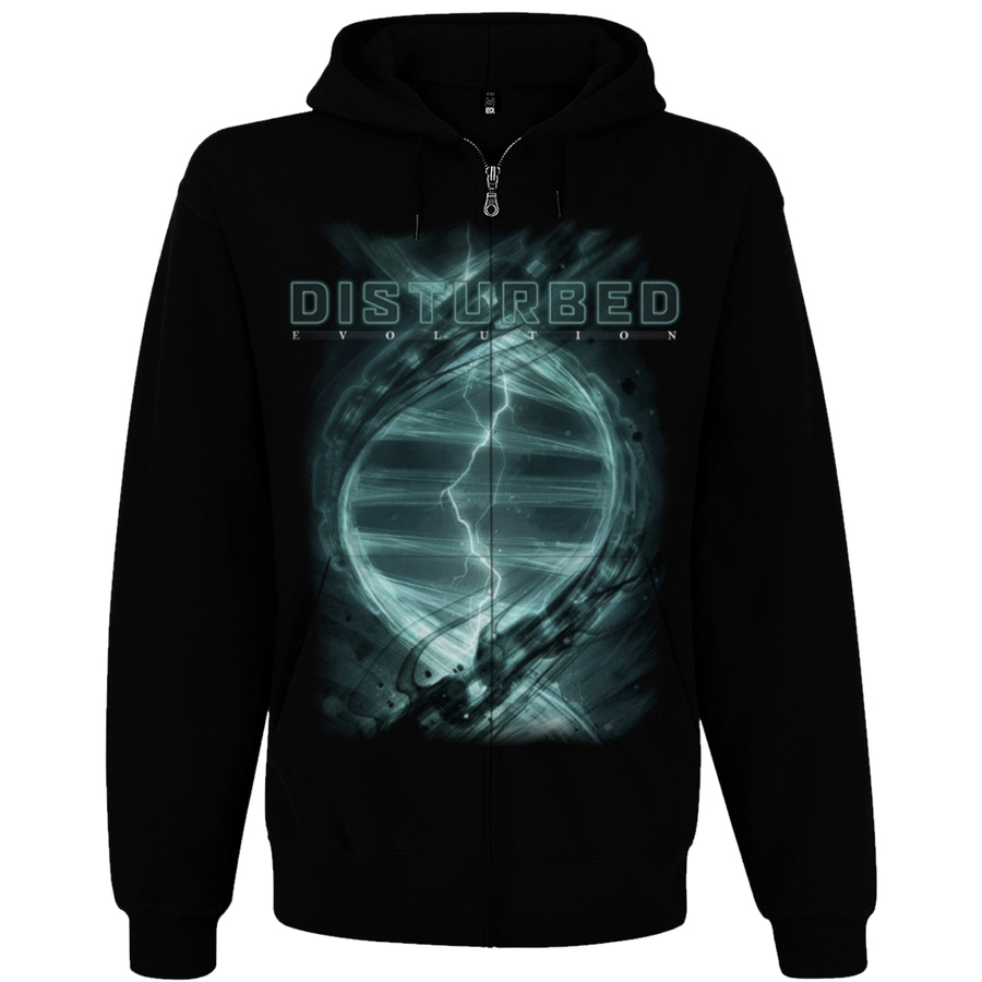 Худи Disturbed "Evolution" на молниипроизводство: Rockway;ткань: 80% - хлопок, 20% - полиэстер;рисунок нанесен методом шелкотрафаретной печати (не трескается, не выстирывается, не выгорает);рисунок: краска пластизолевая производства EU.Стирать при температуре не выше 30°
