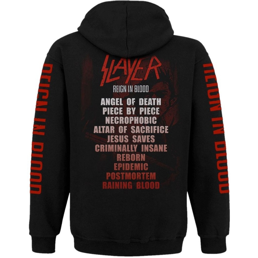 Худи Slayer "Reign In Blood" на молниипроизводство: Rockway;ткань: 80% - хлопок, 20% - полиэстер;рисунок нанесен методом шелкотрафаретной печати (не трескается, не выстирывается, не выгорает);рисунок: краска пластизолевая производства EU.Стирать при температуре не выше 30°