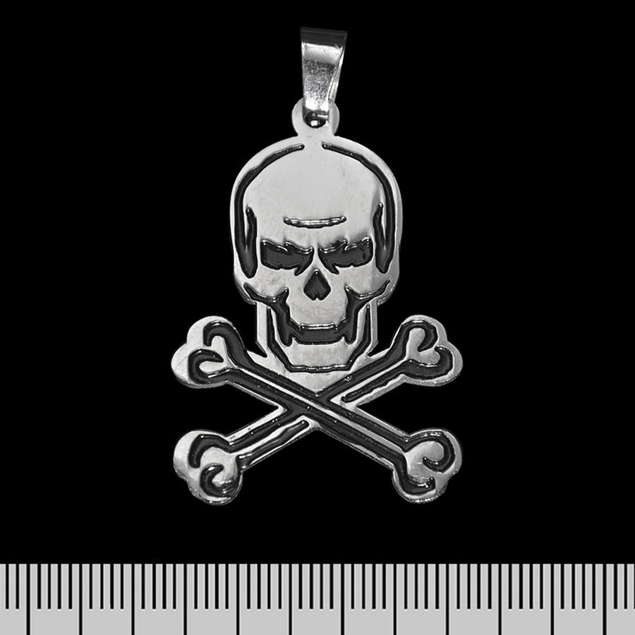 Кулон Череп с костями (ptsb-147) фигурныйКулон из нержавеющей медицинской стали. Вся обработка и гравировка кулона произведена современными методами с помощью лазеров, благодаря чему кулон имеет идеально точные ровные линии, проработанные до тончайших мелочей элементы формы кулона, а также гравировки. Кулон отшлифован до зеркального блеска, так называемым методом Mirror Polished. Кулон не ржавеет, не окисляется, не темнеет, не вызывает аллергических реакций.Материал нержавеющая гипоаллергенная медицинская сталь.Производство EU.