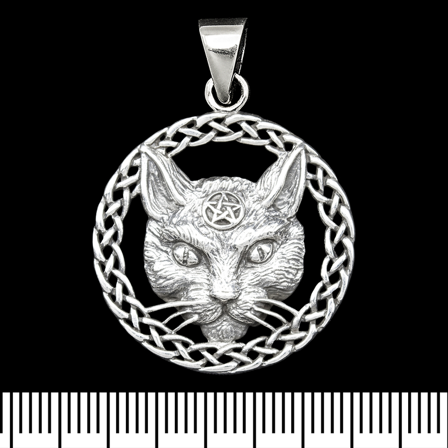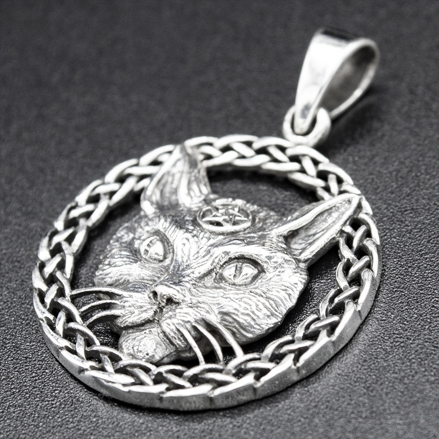 Кулон Голова кота с пентаграммой (серебро, 925 проба) (sp-219) 4,8 грамм, диаметр 27 мм, размер ушка для цепочки 6х4 мм