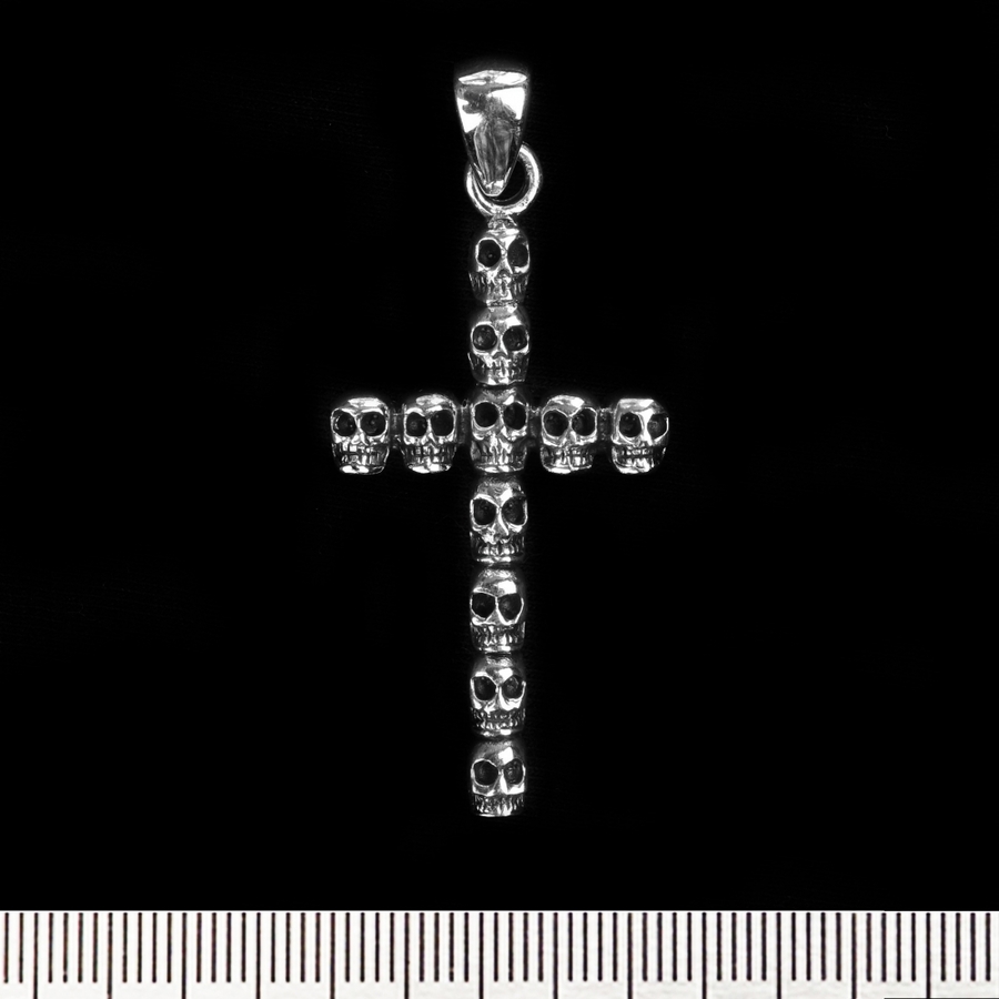Кулон Крест из черепов (серебро, 925 проба) длина 48 мм, ширина 24 мм, размер ушка для цепочки 7х4,5 мм