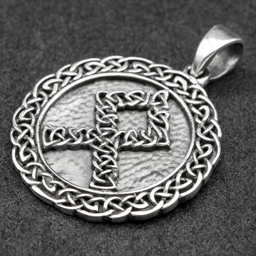 Кулон Руна Одал (Odal rune) в плетеном круге (серебро, 925 проба) 6,95 грамм, диаметр 27 мм, размер ушка для цепочки 6х4 мм
