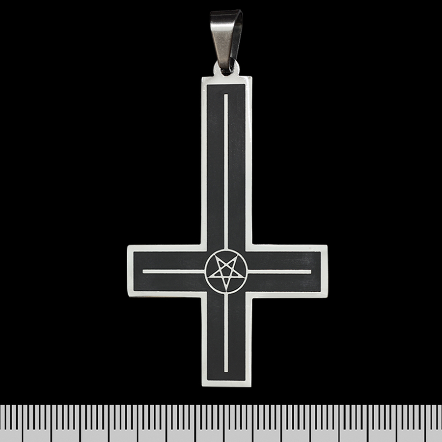 Кулон Перевернутый крест черный с пентаграммой, фигурный (ptsb-192)