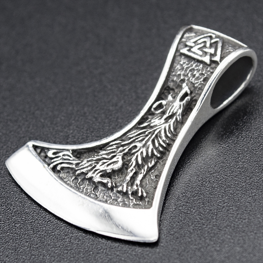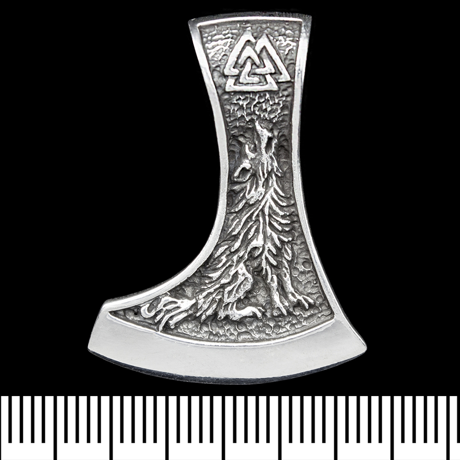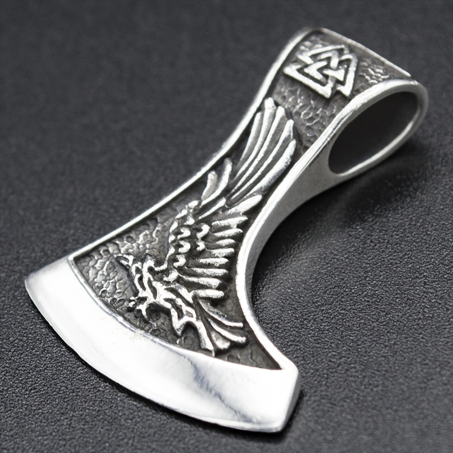 Кулон Топор Перуна с вороном и волком (серебро, 925 проба) (sp-226)