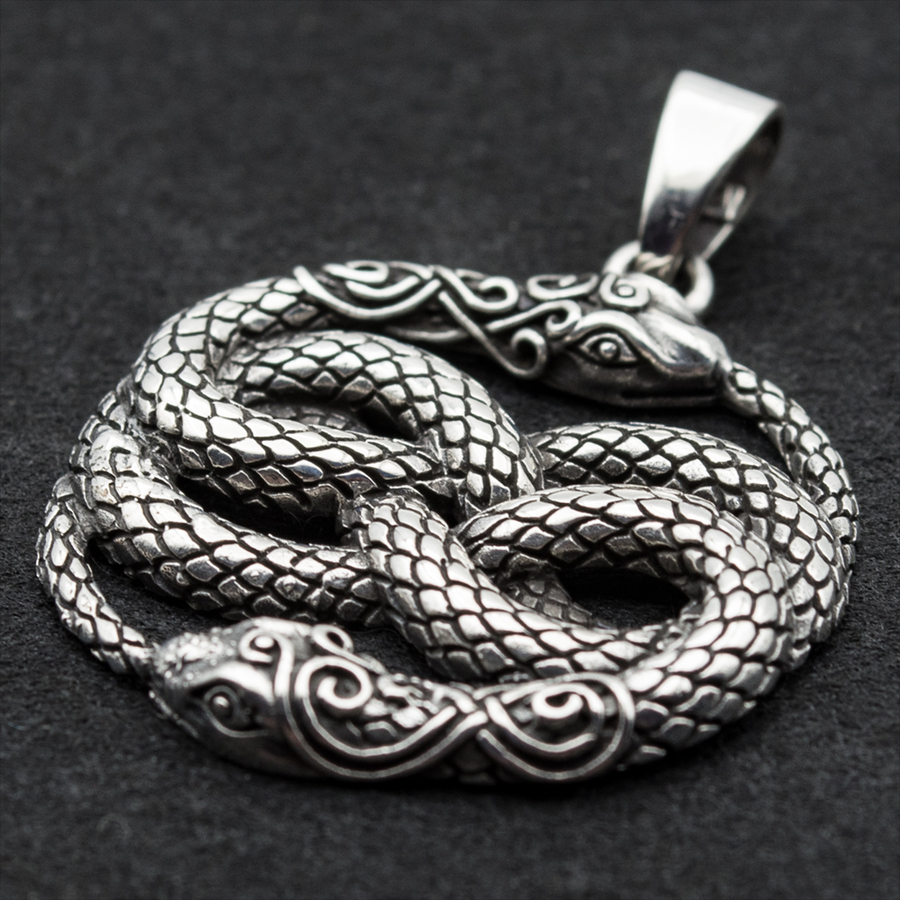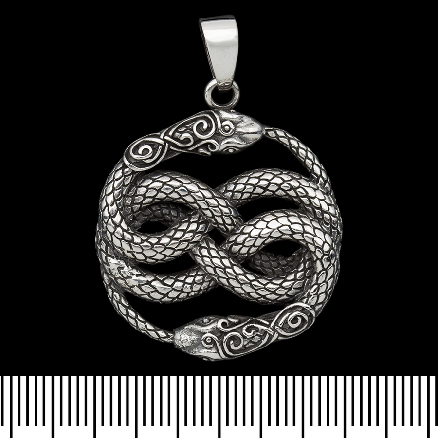 Кулон Уроборос две змеи с узорами (серебро, 925 проба) (sp-163)