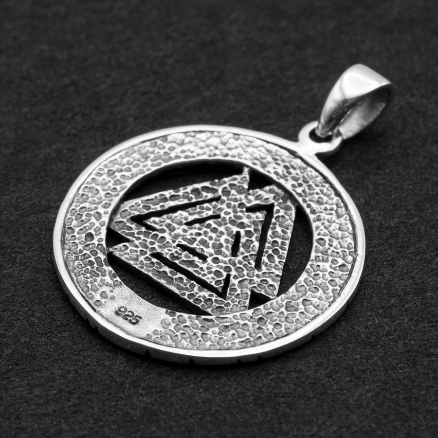 Кулон Валькнут, футарк (серебро, 925 проба) (sp-188) 6,95 грамм, диаметр 29 мм, размер ушка для цепочки 6х4 мм