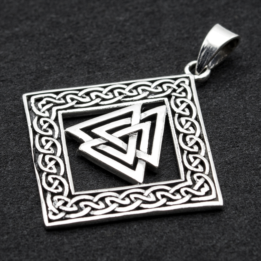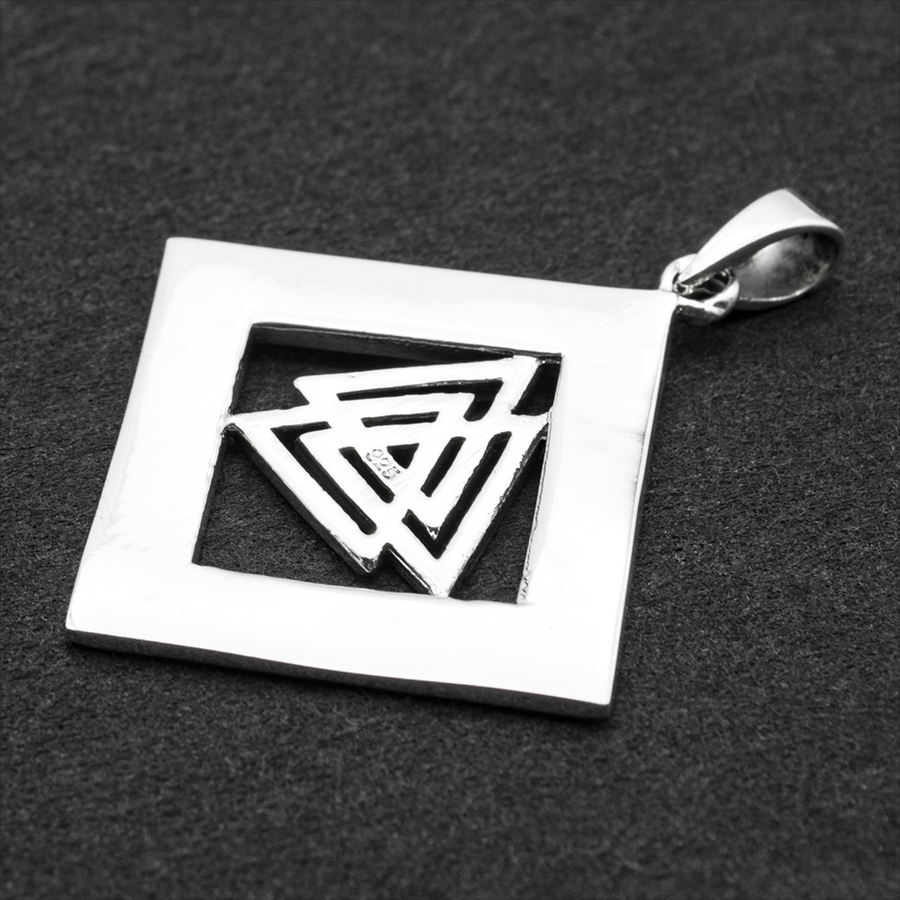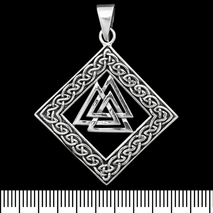 Кулон Валькнуты в ромбе с плетеным узором (серебро, 925 проба) (sp-183) 8,9 грамм, высота 38 мм, ширина 38 мм, размер ушка для цепочки 6х4 мм