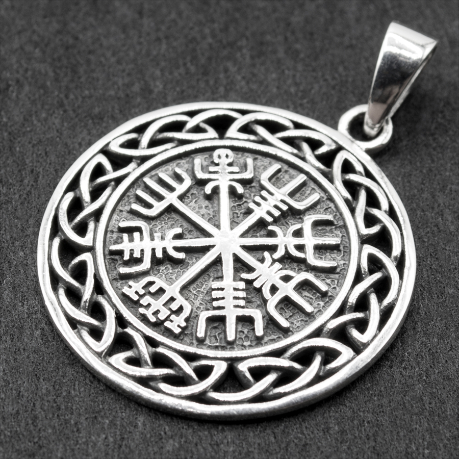 Кулон Вегвизир (рунический компас) в плетеном круге (серебро, 925 проба) (sp-210)