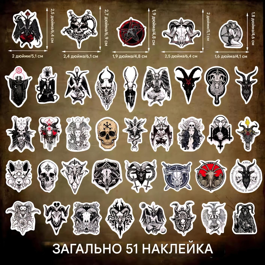 Набор стикеров Satanic goat skulls (stk-101), 51 шт.