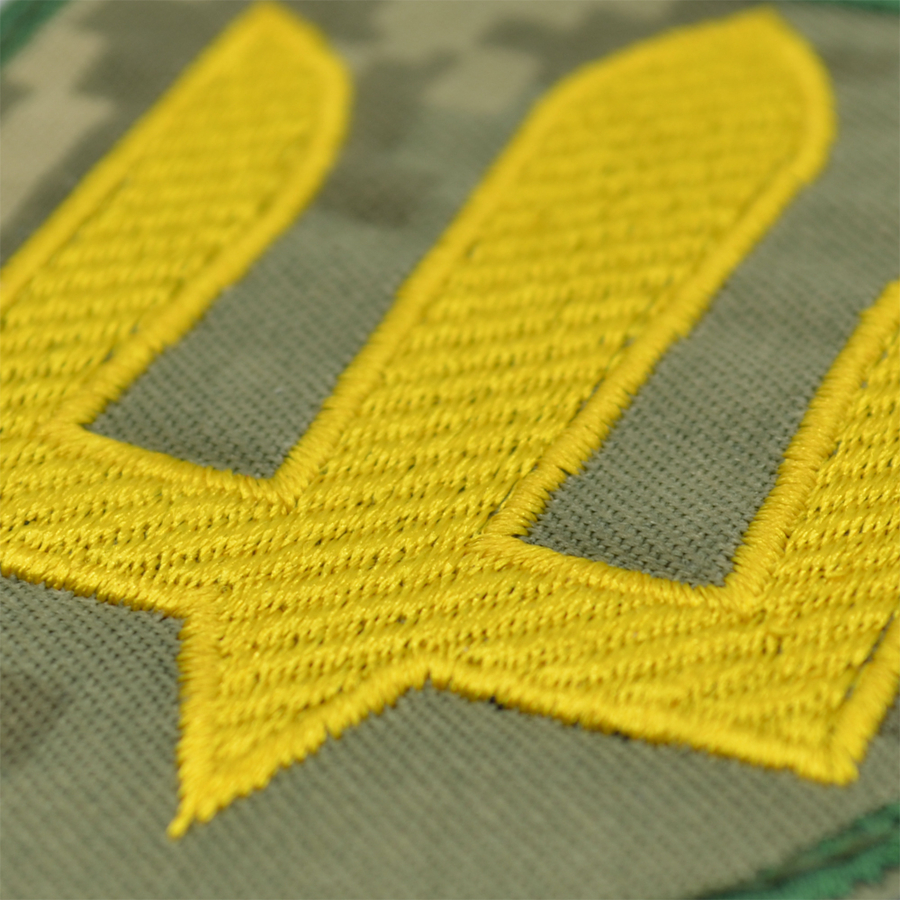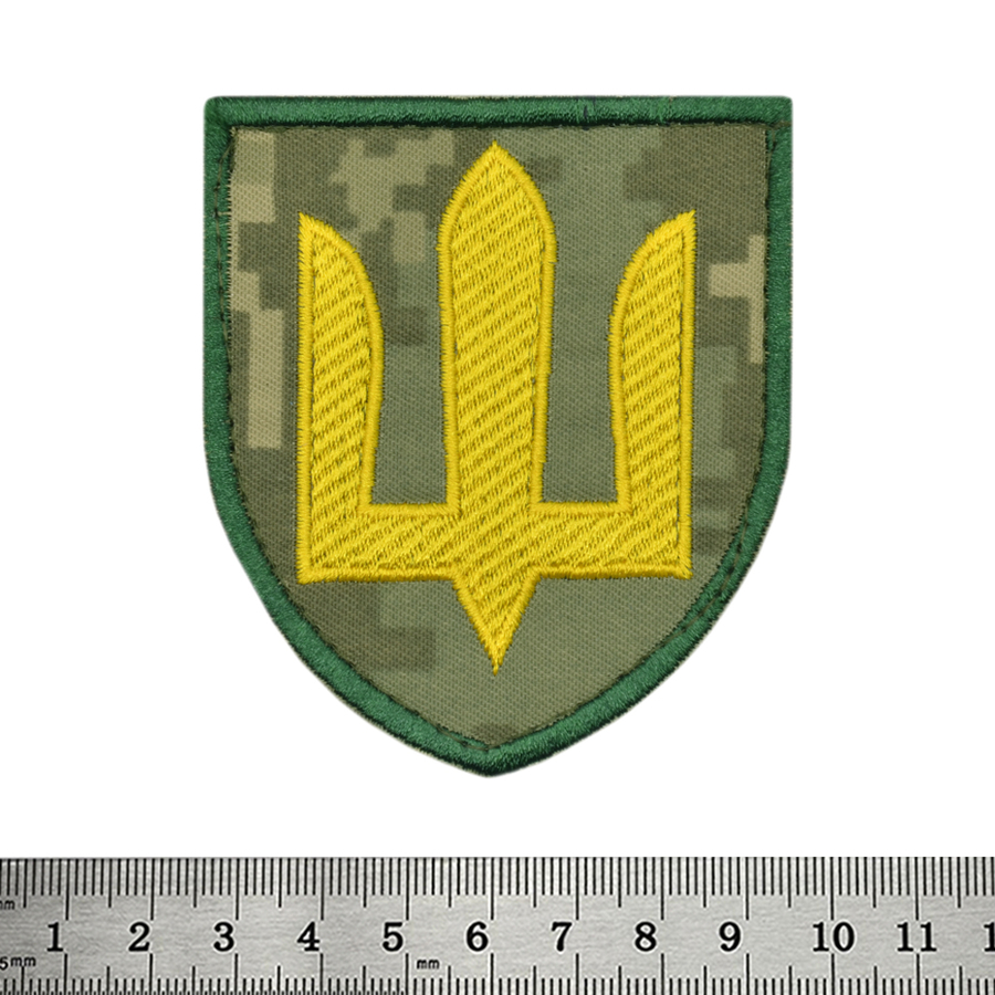 Нашивка на липучке ЗСУ (жовтий Тризуб, пиксельный камуфляж)