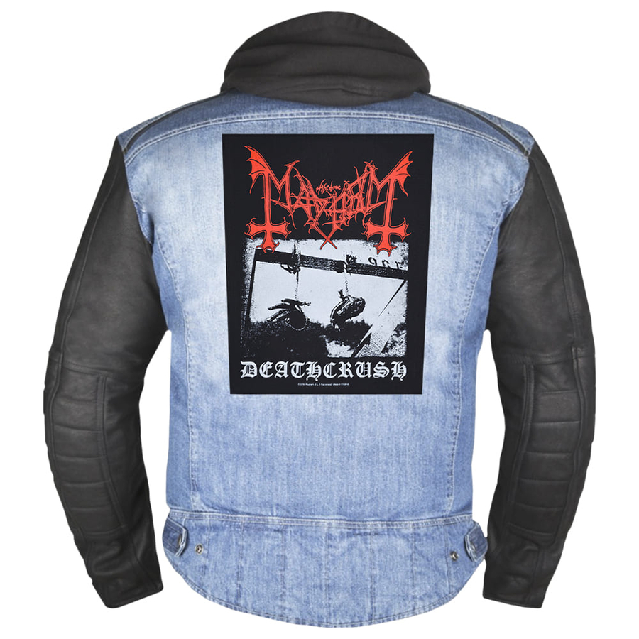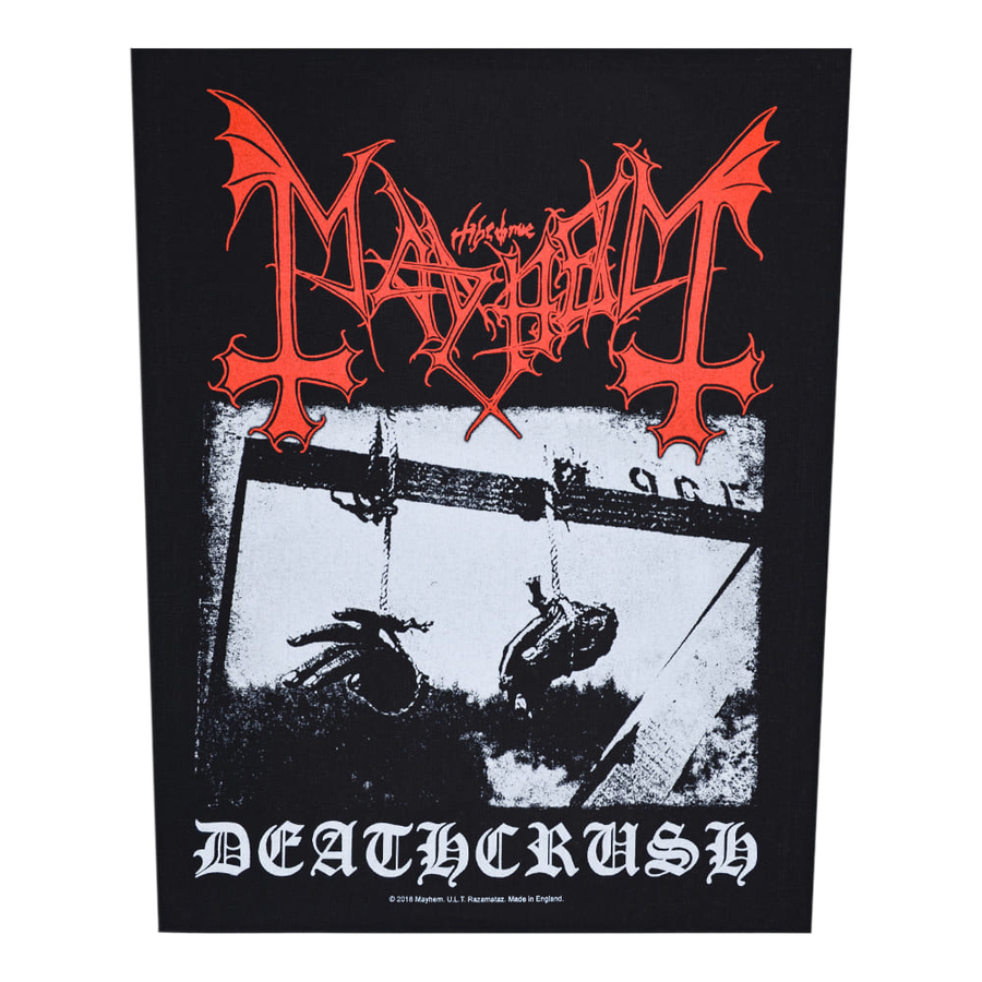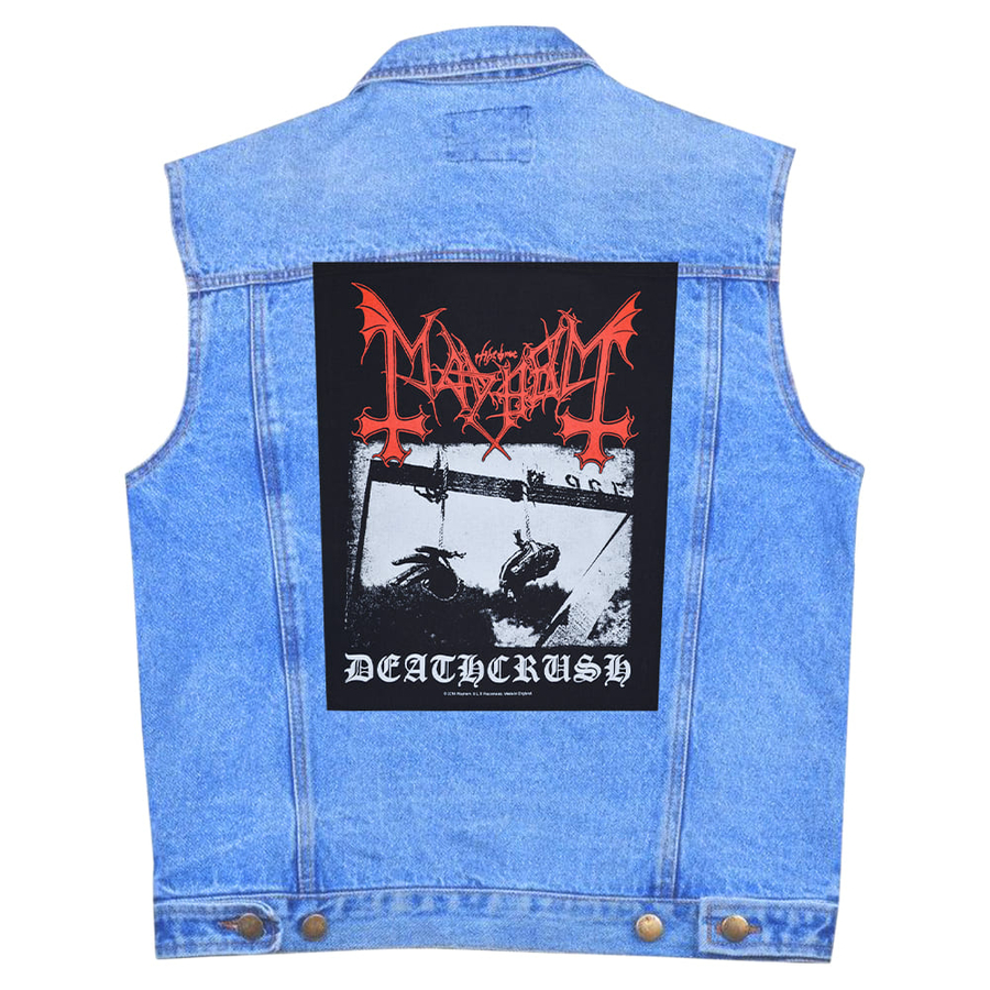 Нашивка наспинная катаная Mayhem "Deathcrush" (olbp-006) Высота 35.5 см, ширина по верхнему краю 29.5 см, ширина по нижнему краю 26 см. Данный товар является официальным лицензированным мерчем (Officially Licensed Backpath). Наспинная нашивка высокого премиум качества. Края нашивки обработаны оверлоком благодаря чему изделие выглядит максимально аккуратным. Изображение нанесено методом шелкотрафаретной печати, высокая детализация свидетельствует о непревзойденном качестве изделия. Нашивка пришивная, мягкая, будет идеально повторять изгибы на одежде. Состав ткани : хлопок/полиэстер. Сделано в Великобритании