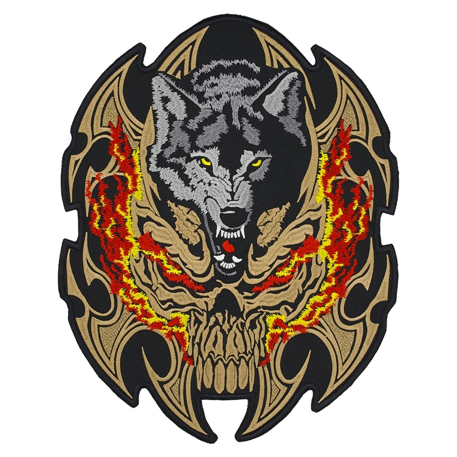 Нашивка наспинная Волк (огненный череп)