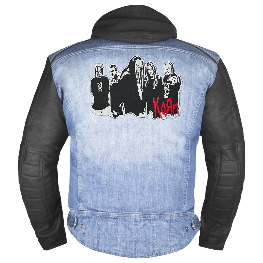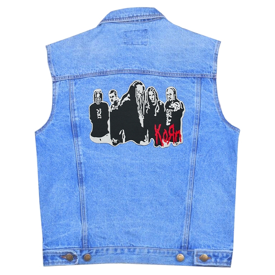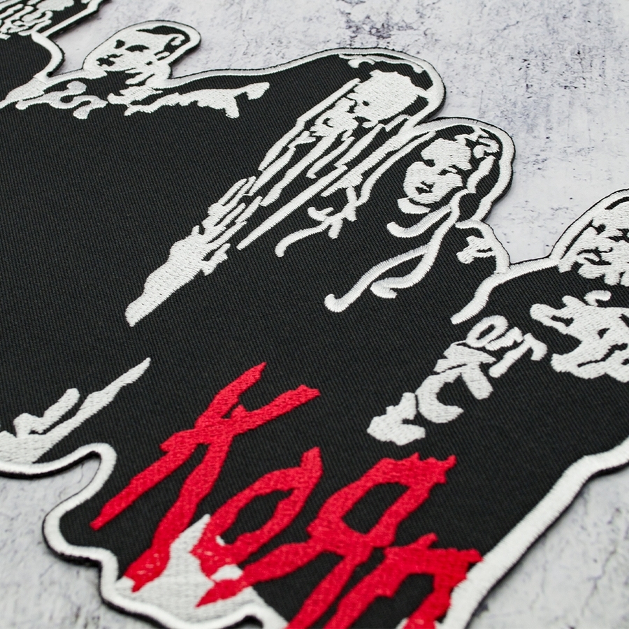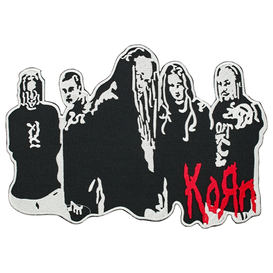 Нашивка термо Korn (band with logo) наспинная (thps-060) Размер - ширина 24.5 см, высота 17 см Высококачественная термонашивка с детализированной машинной вышивкой. Производство: Таиланд. Способ применения: с обратной стороны нашивки находится термопленка. На ровную разглаженную ткань к размеченной области приложите термонашивку, с изнанки или через тонкую ткань (например марлю) с наружной стороны прогладьте предварительно разогретым утюгом. Особое внимание уделите углам и краям. Внимание: соблюдайте температурный режим для ткани на которую будете закреплять нашивку, чтобы не повредить изделие.