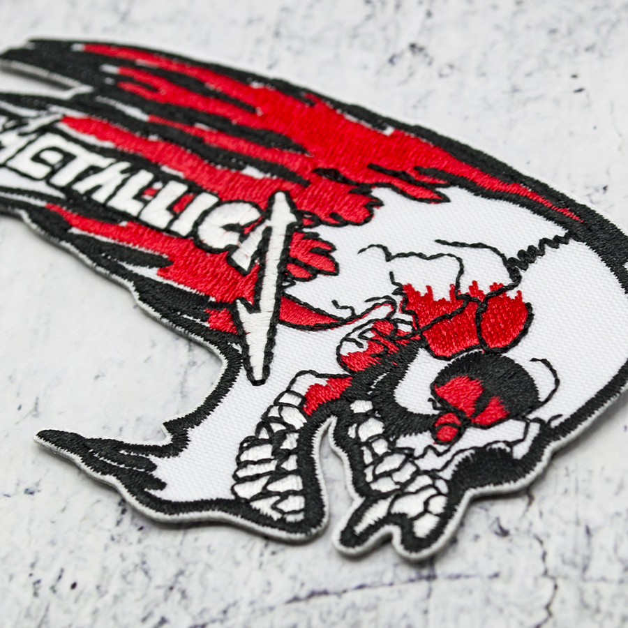 Нашивка термо Metallica (flaming skull) (stp-107) Высококачественная термонашивка. Производство: Таиланд. Способ применения: на обратной стороне нашивки находится термоплёнка. Приложите термонашивку к размеченной области на ровной разглаженной ткани. С внутренней стороны или через тонкую ткань (например, марлю) прогладьте предварительно разогретым утюгом. Особое внимание уделите углам и краям нашивки. Внимание: соблюдайте температурный режим, подходящий для ткани, на которую крепится нашивка, чтобы не повредить изделие.
