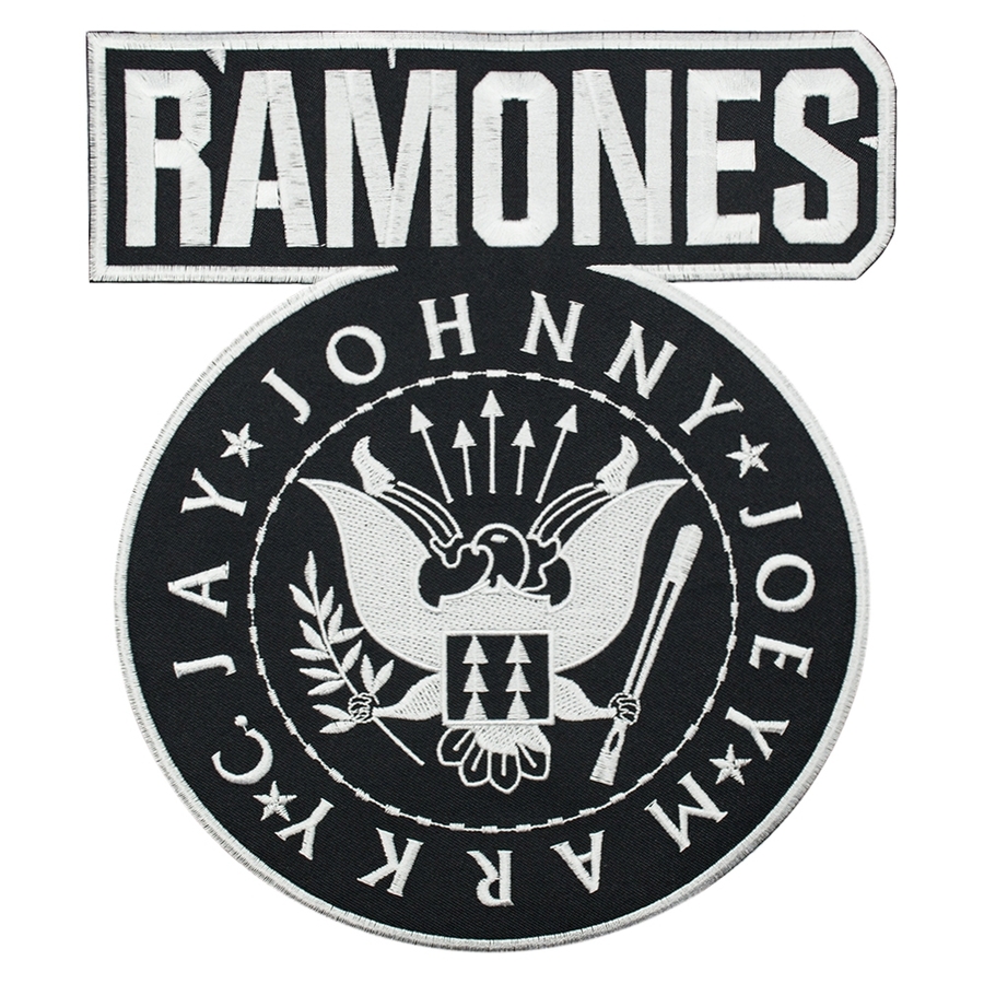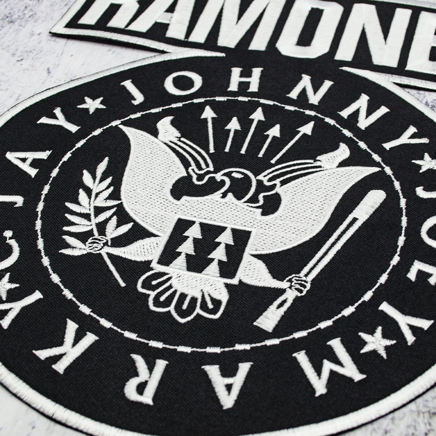 Нашивка термо Ramones (band logo) наспинная (thps-014) Размер - ширина 20 см, высота 23.5 смВысококачественная термонашивка с детализированной машинной вышивкой. Производство: Таиланд. Способ применения: с обратной стороны нашивки находится термопленка. На ровную разглаженную ткань к размеченной области приложите термонашивку, с изнанки или через тонкую ткань (например марлю) с наружной стороны прогладьте предварительно разогретым утюгом. Особое внимание уделите углам и краям. Внимание: соблюдайте температурный режим для ткани на которую будете закреплять нашивку, чтобы не повредить изделие.