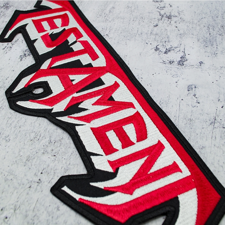 Нашивка термо Testament (red logo) наспинная (thps-003) Размер - ширина 30 см, высота 10 смВысококачественная термонашивка с детализированной машинной вышивкой. Производство: Таиланд. Способ применения: с обратной стороны нашивки находится термопленка. На ровную разглаженную ткань к размеченной области приложите термонашивку, с изнанки или через тонкую ткань (например марлю) с наружной стороны прогладьте предварительно разогретым утюгом. Особое внимание уделите углам и краям. Внимание: соблюдайте температурный режим для ткани на которую будете закреплять нашивку, чтобы не повредить изделие.