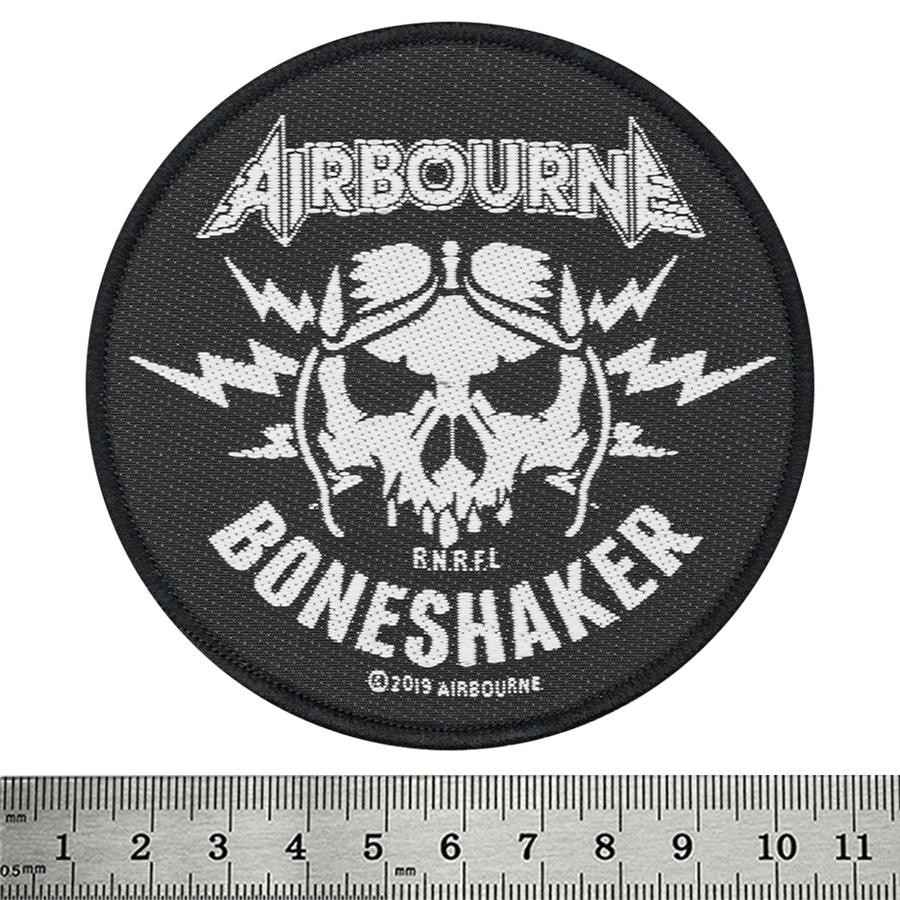 Officially Licensed Path Нашивка тканая AIRBOURNE - BONESHAKER (ofp-172) Размер - 9 см Данный товар является официальным лицензированным мерчем. Вытканная нашивка высокого качества и детализации. Края нашивки обработаны оверлоком благодаря чему изделие выглядит максимально аккуратным. Нашивка пришивная. При необходимости к нашивке можете пришить липучку, для того чтобы закрепить ее на одежде, рюкзаке и т.д. там где уже есть место под подобные аксессуары. Состав ткани : полиэстер. Сделано в Великобритании