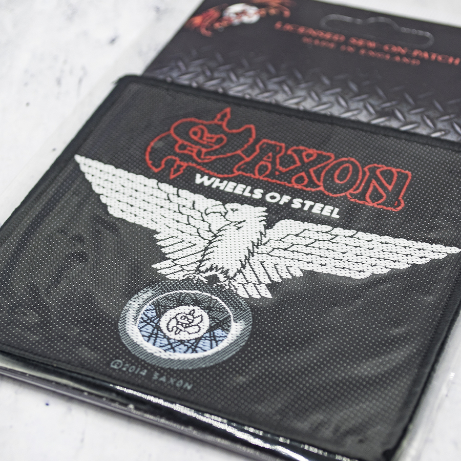 Нашивка тканая SAXON - WHEELS OF STEEL (ofp-296) 9,5х10 см Данный товар является официальным лицензированным мерчем. Вытканная нашивка высокого качества и детализации. Края нашивки обработаны оверлоком благодаря чему изделие выглядит максимально аккуратным. Нашивка пришивная. При необходимости к нашивке можете пришить липучку, для того чтобы закрепить ее на одежде, рюкзаке и т.д. там где уже есть место под подобные аксессуары. Состав ткани : полиэстер. Сделано в Великобритании