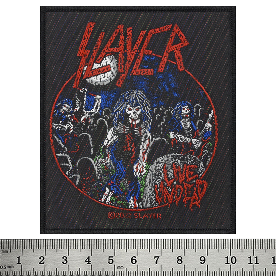 Officially Licensed Path Нашивка тканая SLAYER - LIVE UNDEAD (ofp-125) Размер – 10х8 см Данный товар является официальным лицензированным мерчем. Вытканная нашивка высокого качества и детализации. Края нашивки обработаны оверлоком благодаря чему изделие выглядит максимально аккуратным. Нашивка пришивная. При необходимости к нашивке можете пришить липучку, для того чтобы закрепить ее на одежде, рюкзаке и т.д. там где уже есть место под подобные аксессуары. Состав ткани : полиэстер. Сделано в Великобритании
