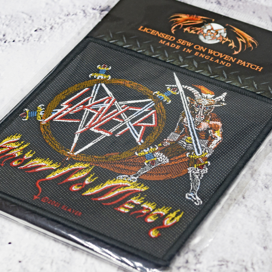 Officially Licensed Path Нашивка тканая SLAYER - SHOW NO MERCY (ofp-074) Размер – 9,8х10 см Данный товар является официальным лицензированным мерчем. Вытканная нашивка высокого качества и детализации. Края нашивки обработаны оверлоком благодаря чему изделие выглядит максимально аккуратным. Нашивка пришивная. При необходимости к нашивке можете пришить липучку, для того чтобы закрепить ее на одежде, рюкзаке и т.д. там где уже есть место под подобные аксессуары. Состав ткани : полиэстер. Сделано в Великобритании